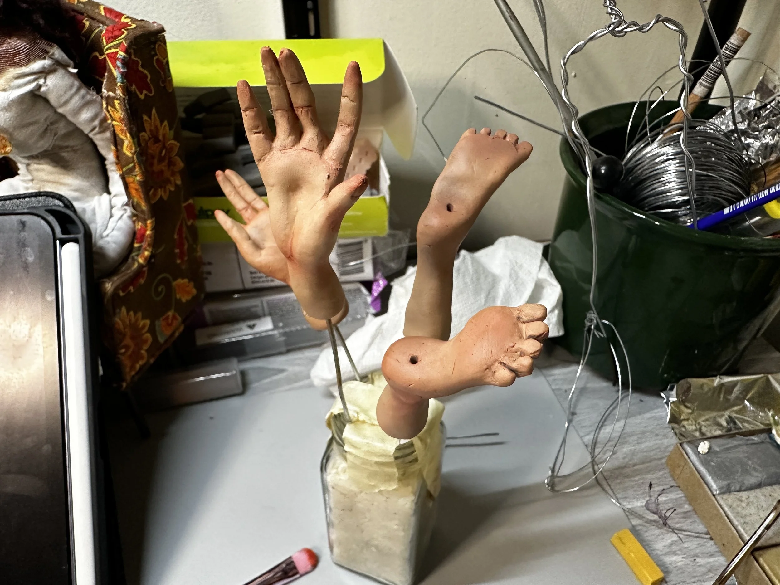 First time blushing limbs, but they add a nice touch. Unfortunately one of the toes broke off in a drop from the desk to the floor. I used super glue to put it back on but it doesn’t make me secure is the durability of this one. I wonder if my lack of condition made this for suspectable to break as there was also a crack in the palm of the hand (shown above) Super glue came to the rescue again. I did buy a pasta machine just in case that happened to be an issue.